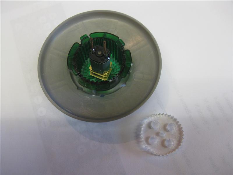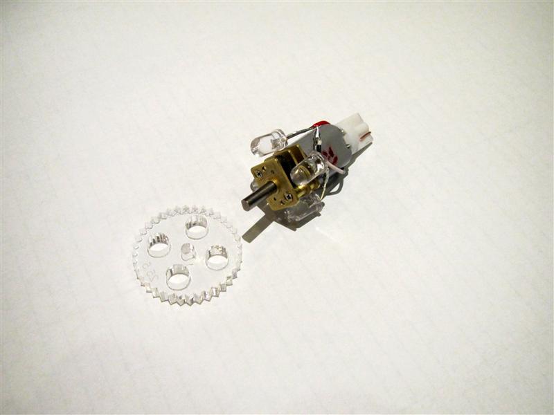 Here you see the gear plastic it will fit into the flasher cab and make it rotate with the help of the motor