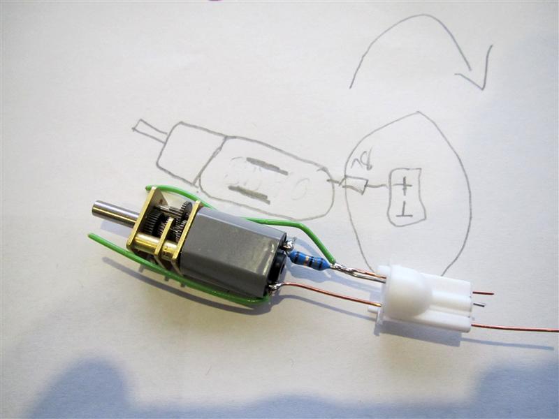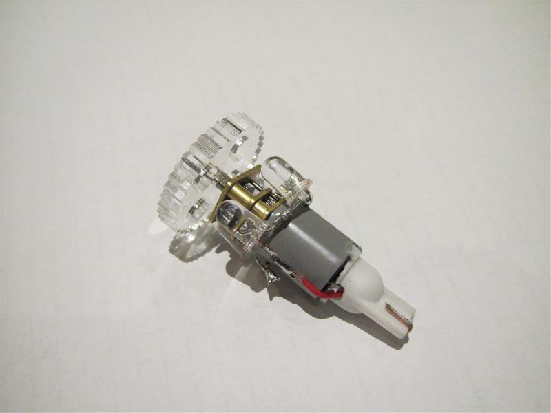 It will be easy to do in the final product. You only have to remove the original bulb and replace it with the gearmotor with Leds around it.