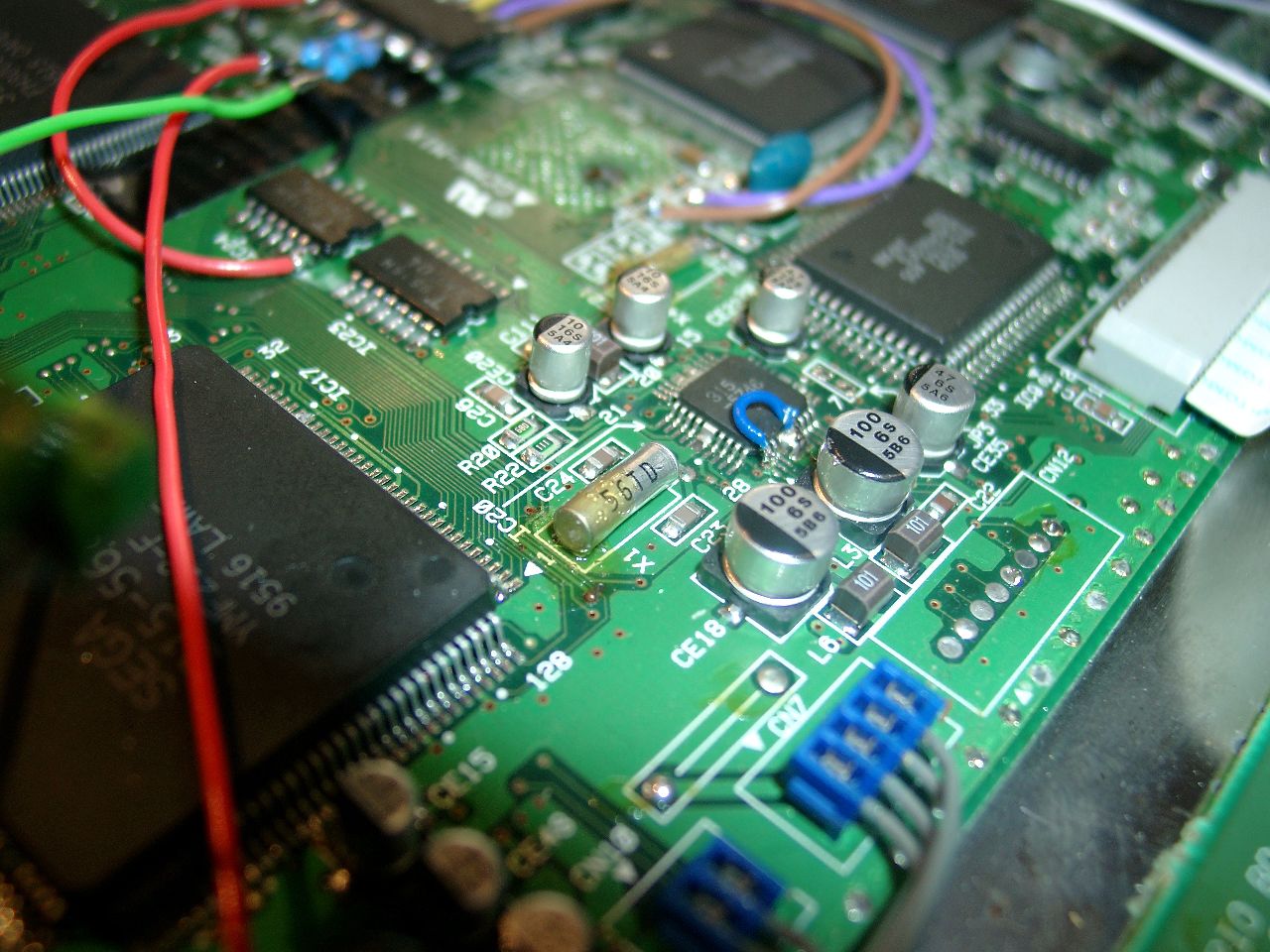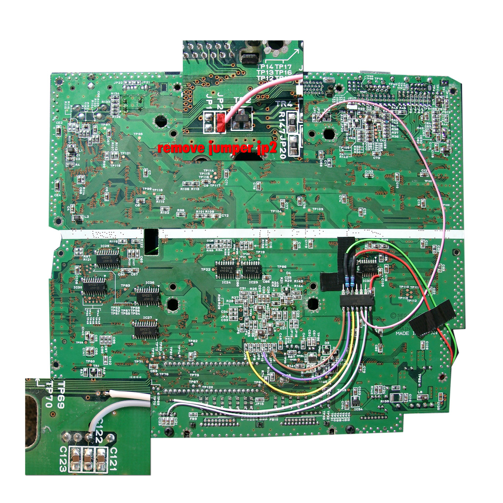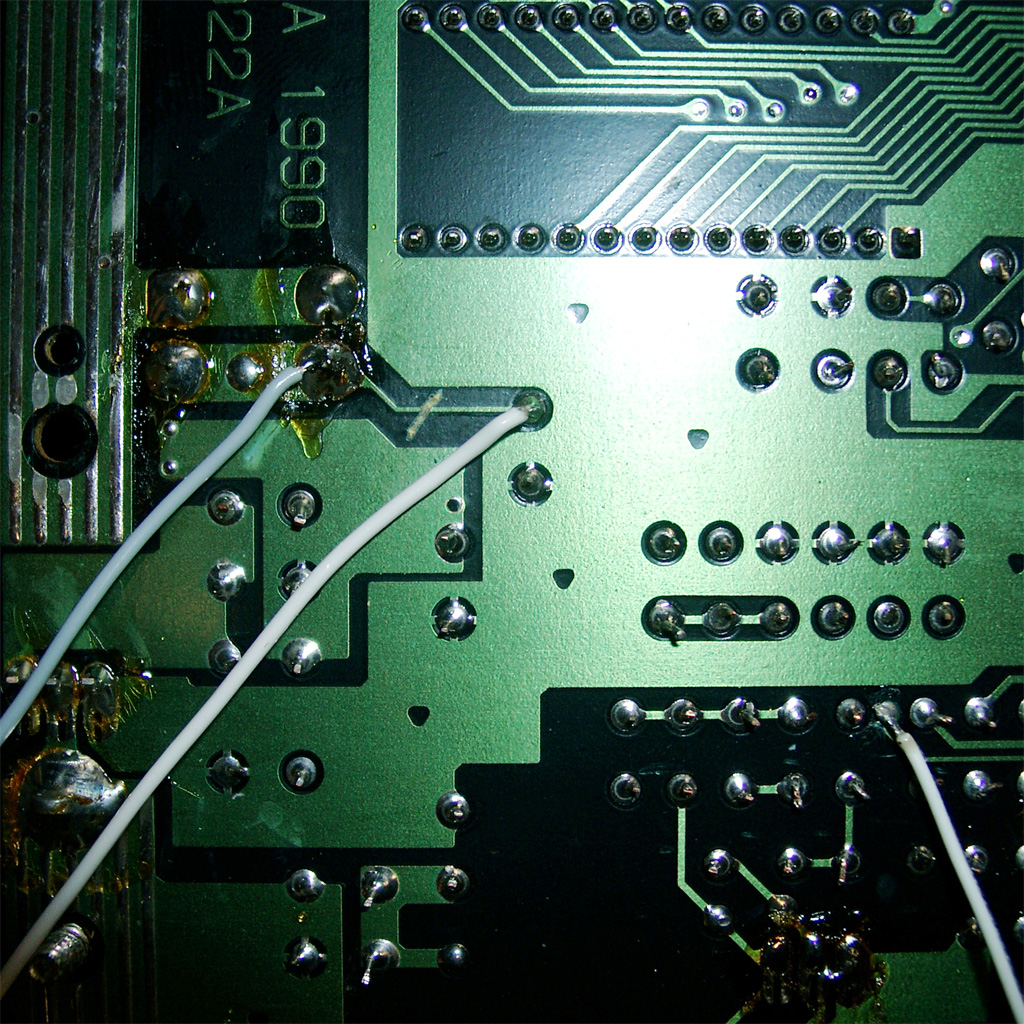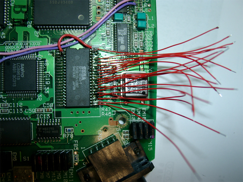 Solder one pink wire from AV Out Pin 6 (solder Site) to Pin 32 of IC12 (component site)