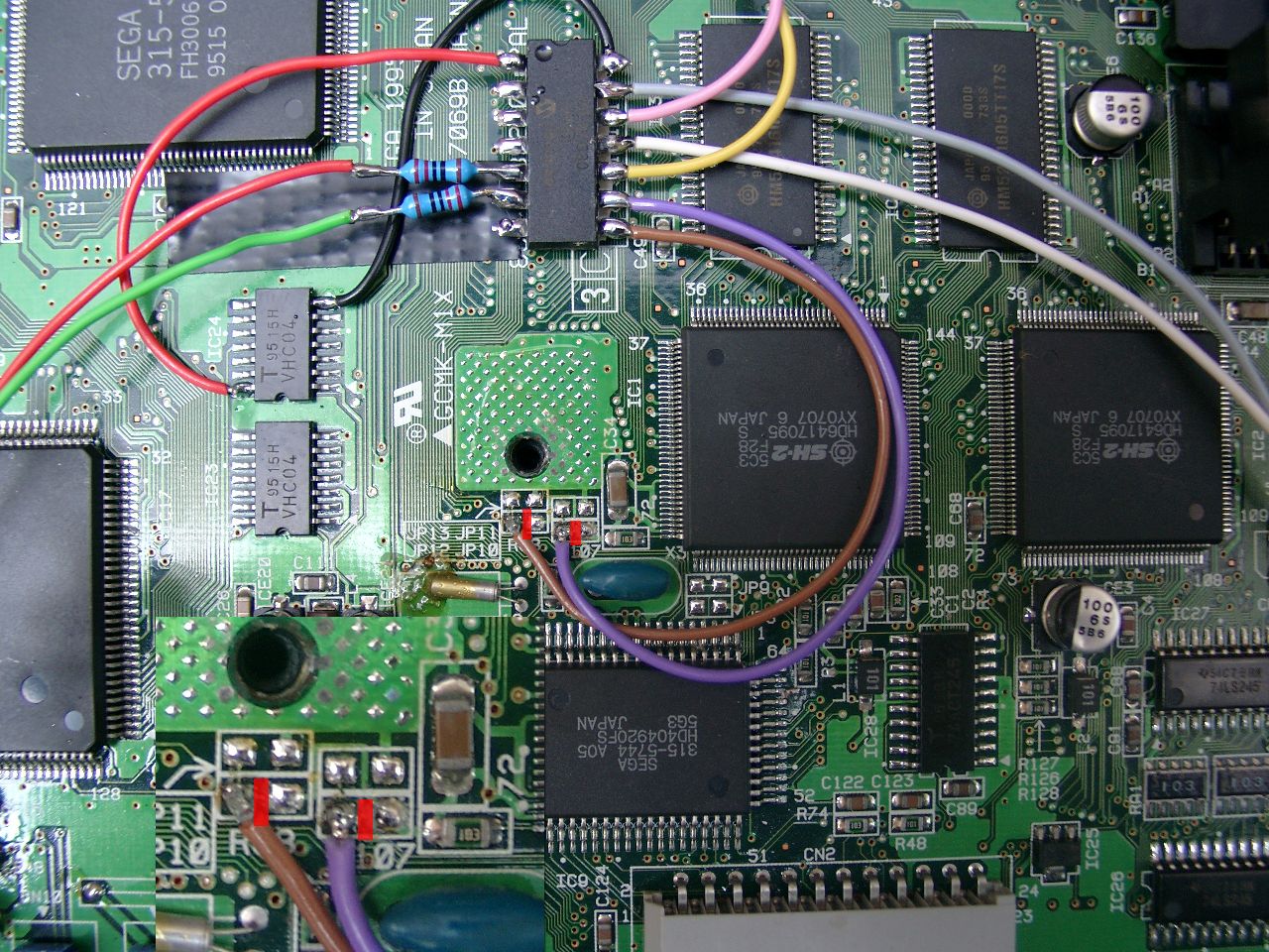 Here you will see the Sega Genesis 2 switchlees mod including the 3 more wires (yellow, blue, and pink).