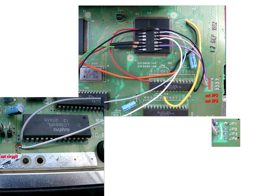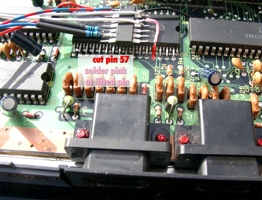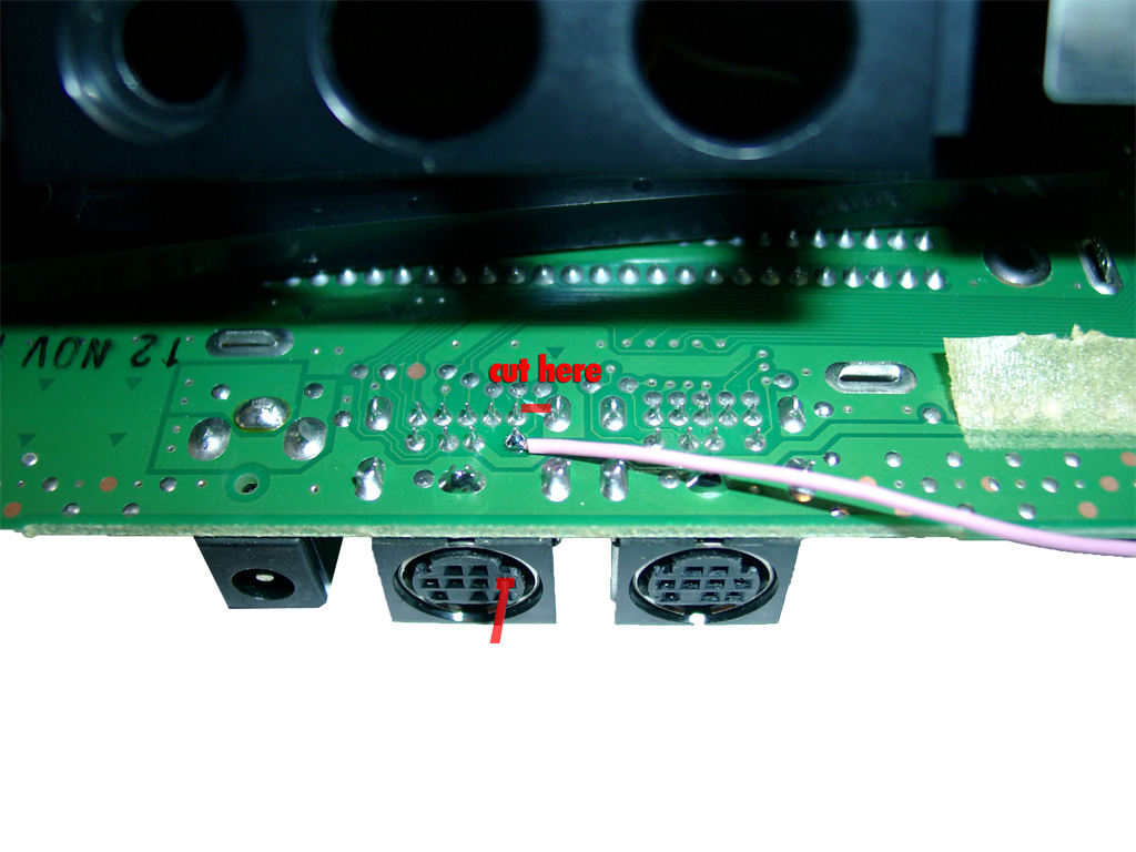 At the solder site you have to cut the cirquit path to Pin 6 of the A/V Port and solder the pink wire to Pin 6 of the A/V Port.