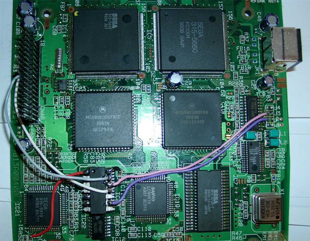 PIC Pin 11 white is connected to the lower site (Reset Sega 315-5660 IC Pin 78)