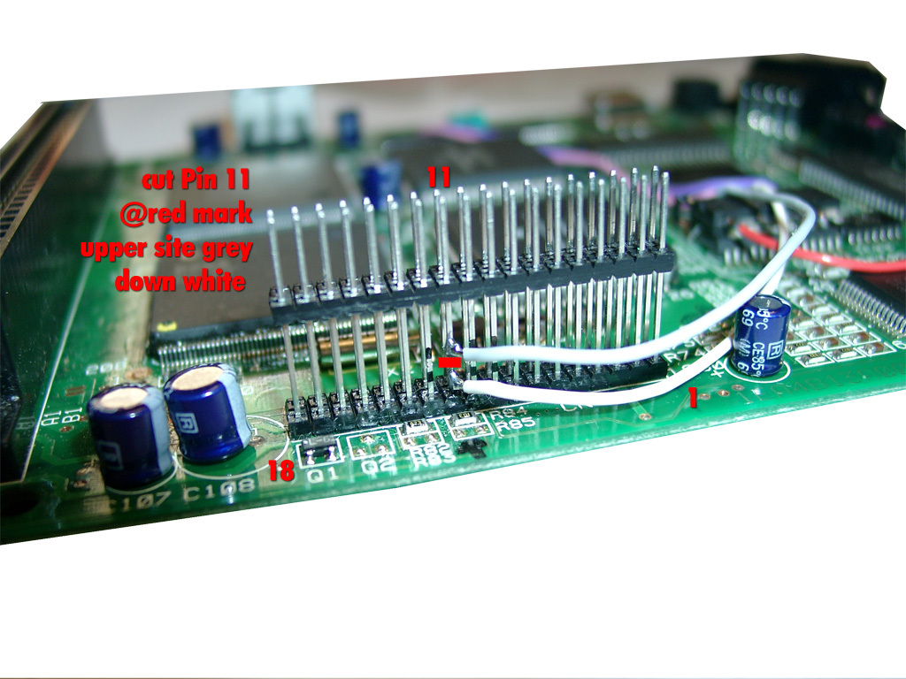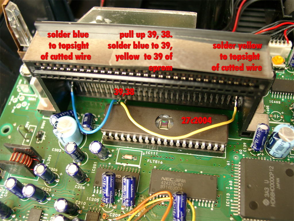 You will have to pullup Pin 38 and Pin 39 of the Eprom and wire blue and yellow like the following picture