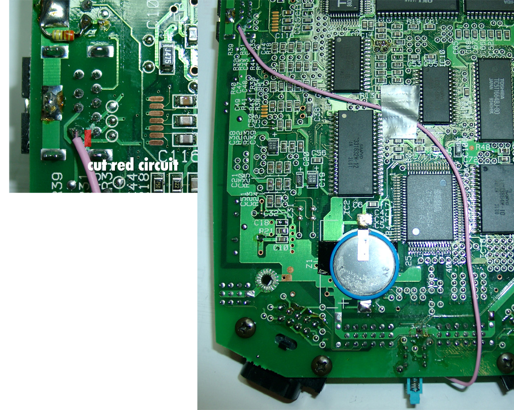 After opening you have to go under the mainboard and cut 3 wires of the mainboard