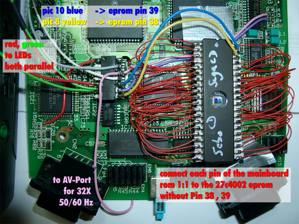 For 32X support add a 2nd pink wire to Pin 12 of the PIC.