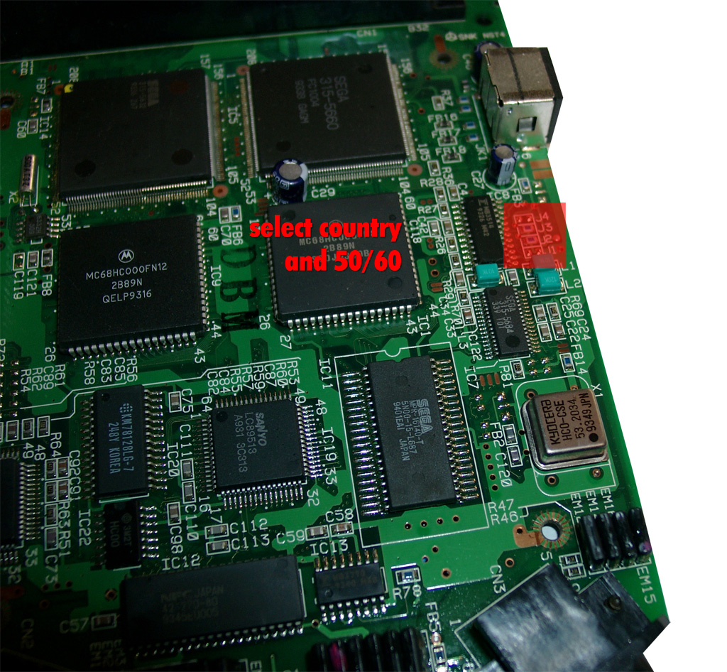 You are in need of a Eprom (27c2004) and burn all 3 bios Version into it. The usa, japanese and pal Version. You can select the different Bios Version via A16 (Pin 38) and A17 (Pin 39) of the Eprom.