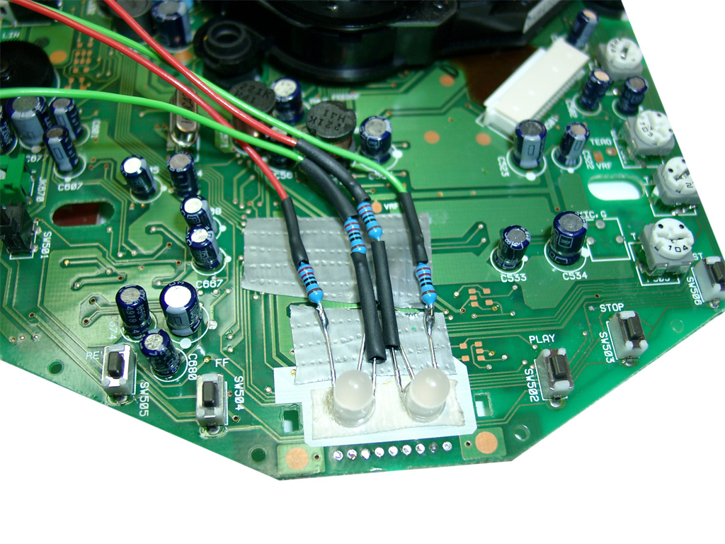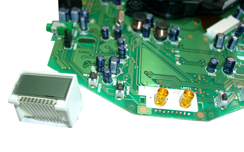 Now we have to take the 2nd Mainboard (CD-Area). We have to mod the Display with two Duo Leds. First you have to remove the shielding.