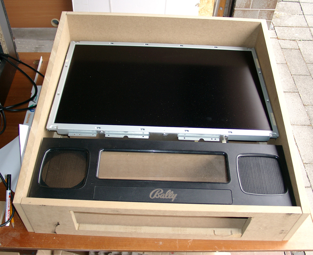 My first try via MDF look at the holder in the middle for the 30Zoll LCD for the Backglass picture