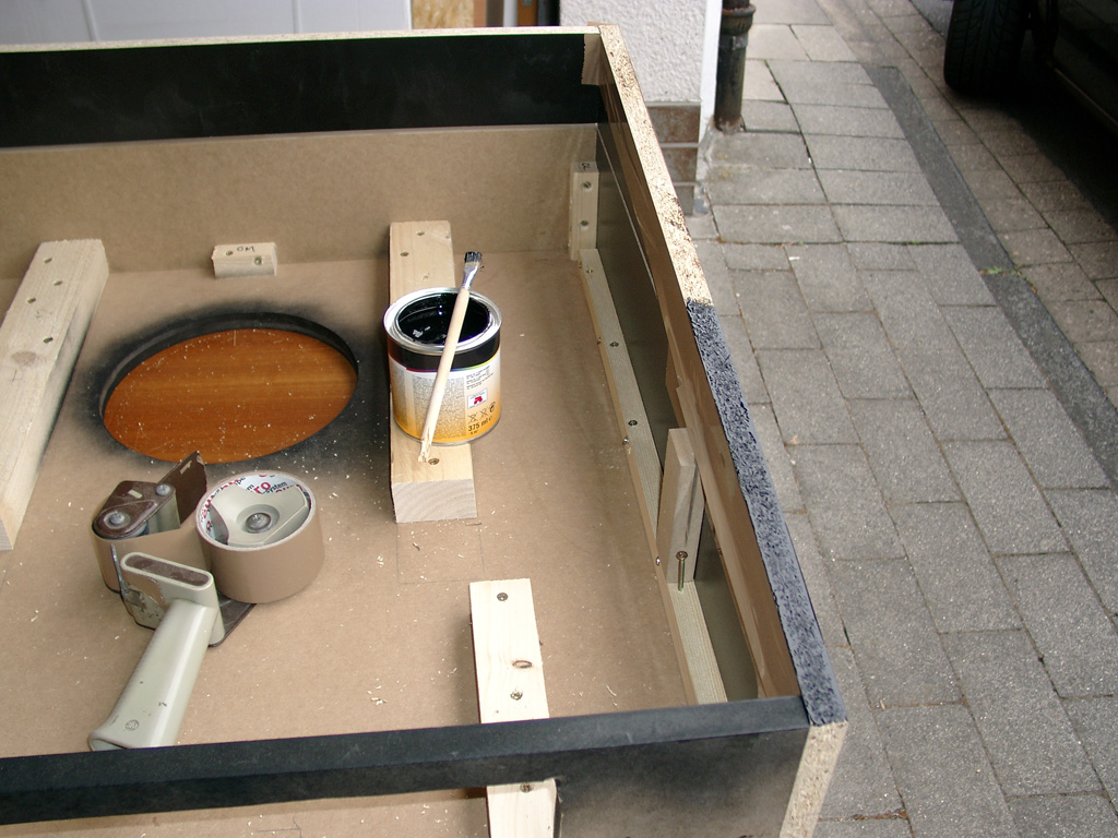 I changed to black mdf. Here you can see a router line for the glassfront.