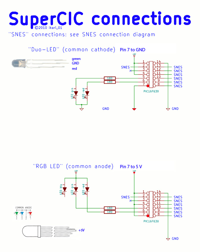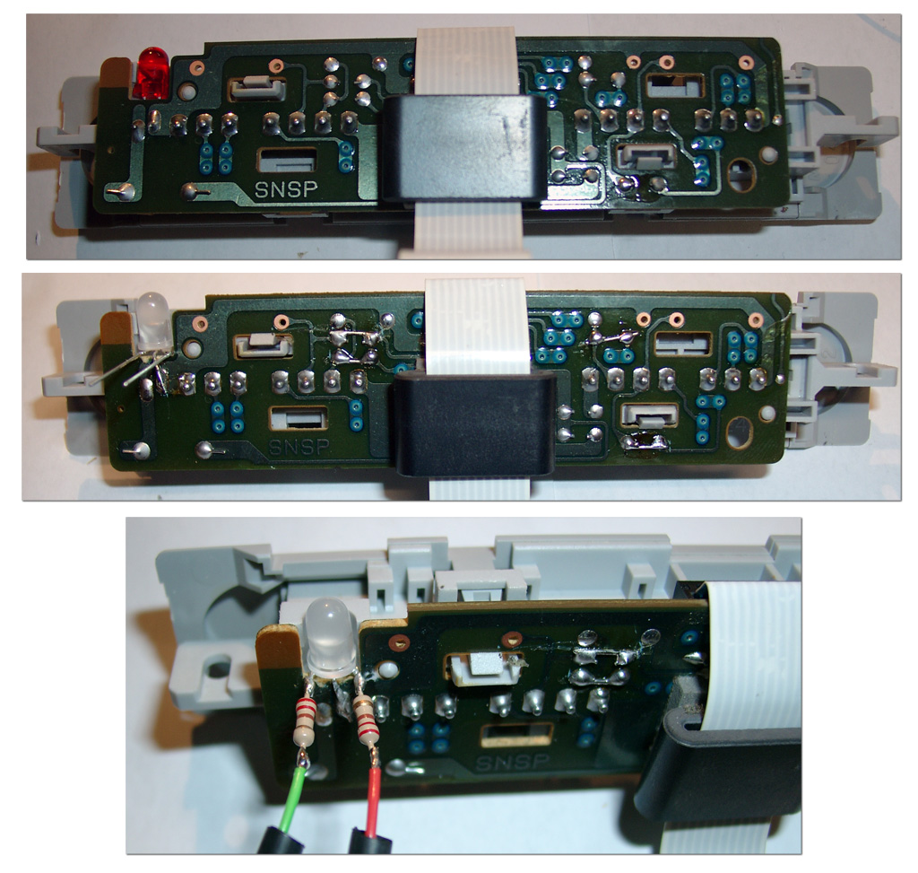 After this you can use a DUO-LED (gn/red) 5mm with 220Ohm Resistors. I solder the middle (GND) to the SNES Controllerport