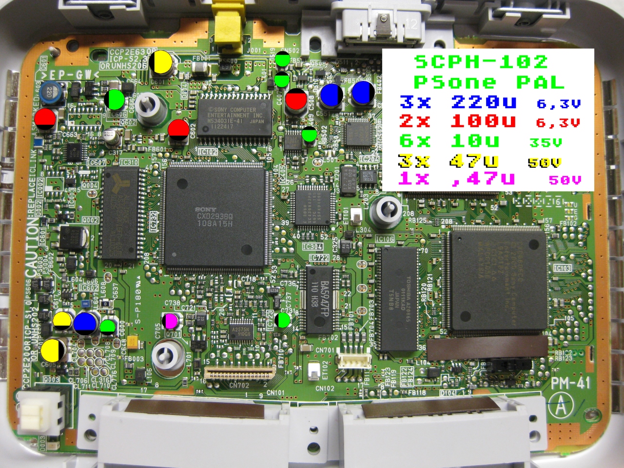I used a lot of ceramic caps and for the 220u new SMD caps