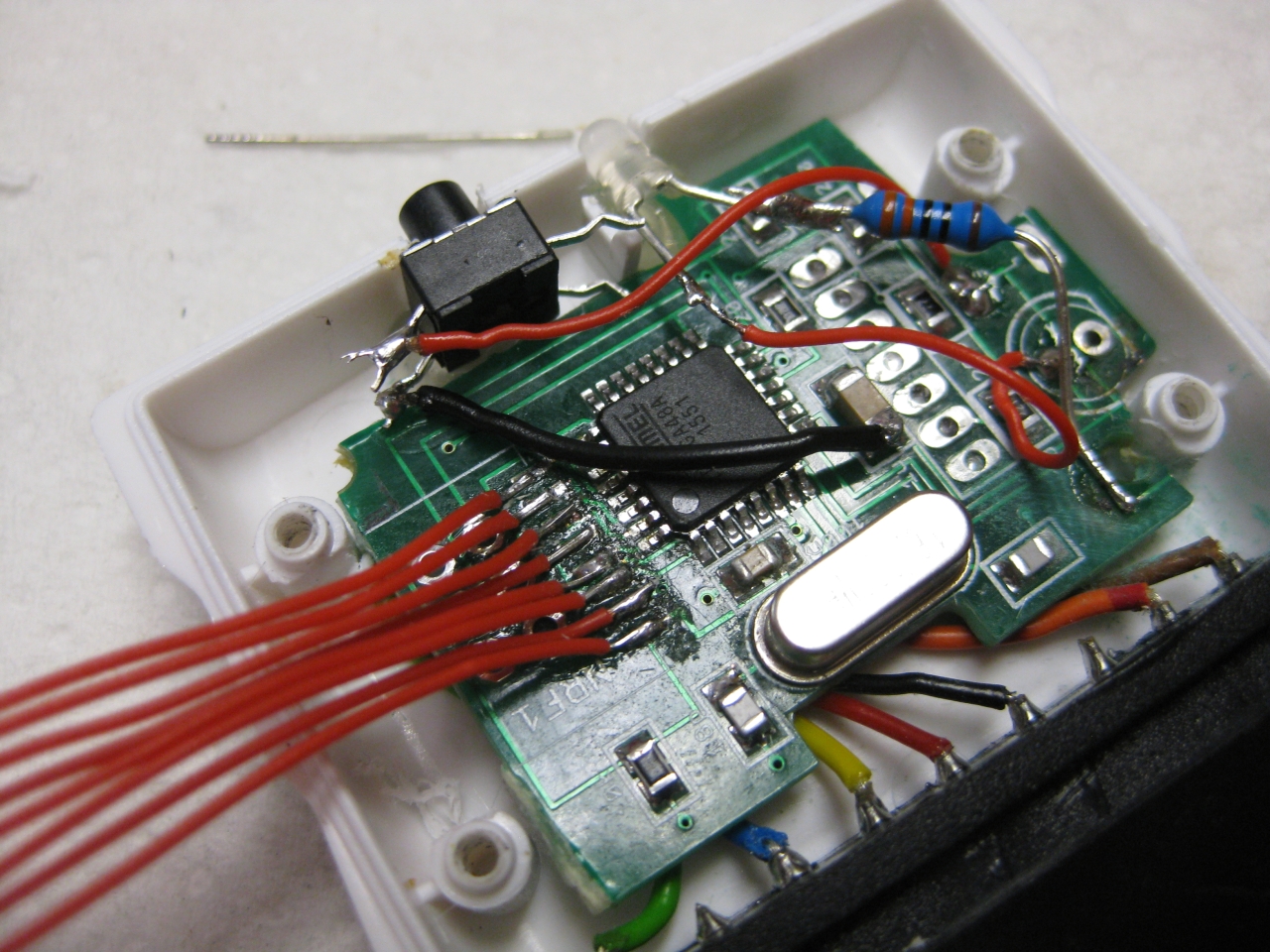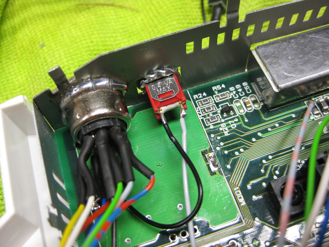 I removed the RF-Unit to put my „standard“ DIN Connector and for adding a button instead of the chanel selector. With the help of this tiny button you can select between 50/60Hz.