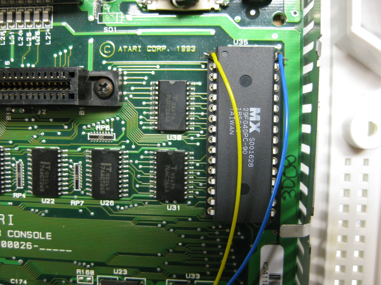 You have to remove the original Jaguar Bios and use a DIP 32 socket.