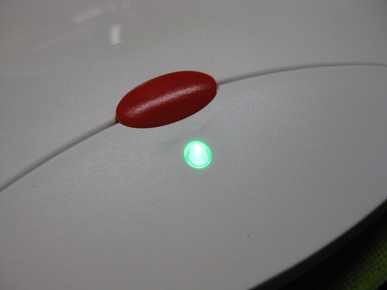 b) you push and hold the button. Now the Color of the LED will toogle between green and red. When you release the button