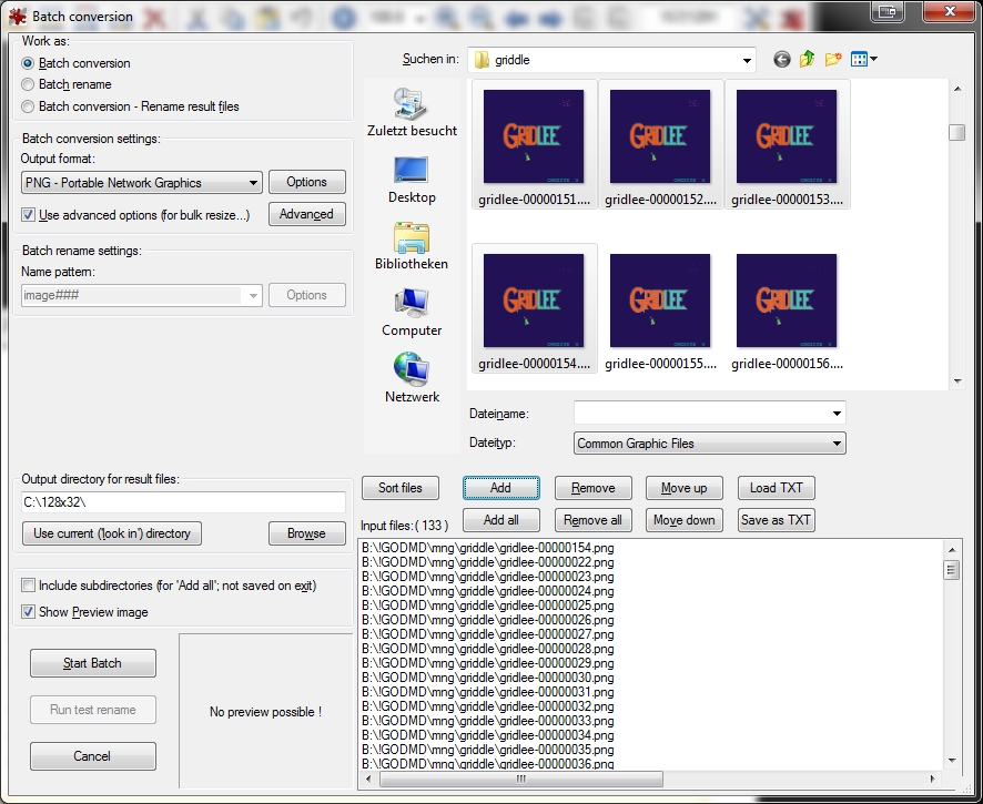 start it in the path where the griddle.mng via commandline: advmng.exe -x griddle.mng