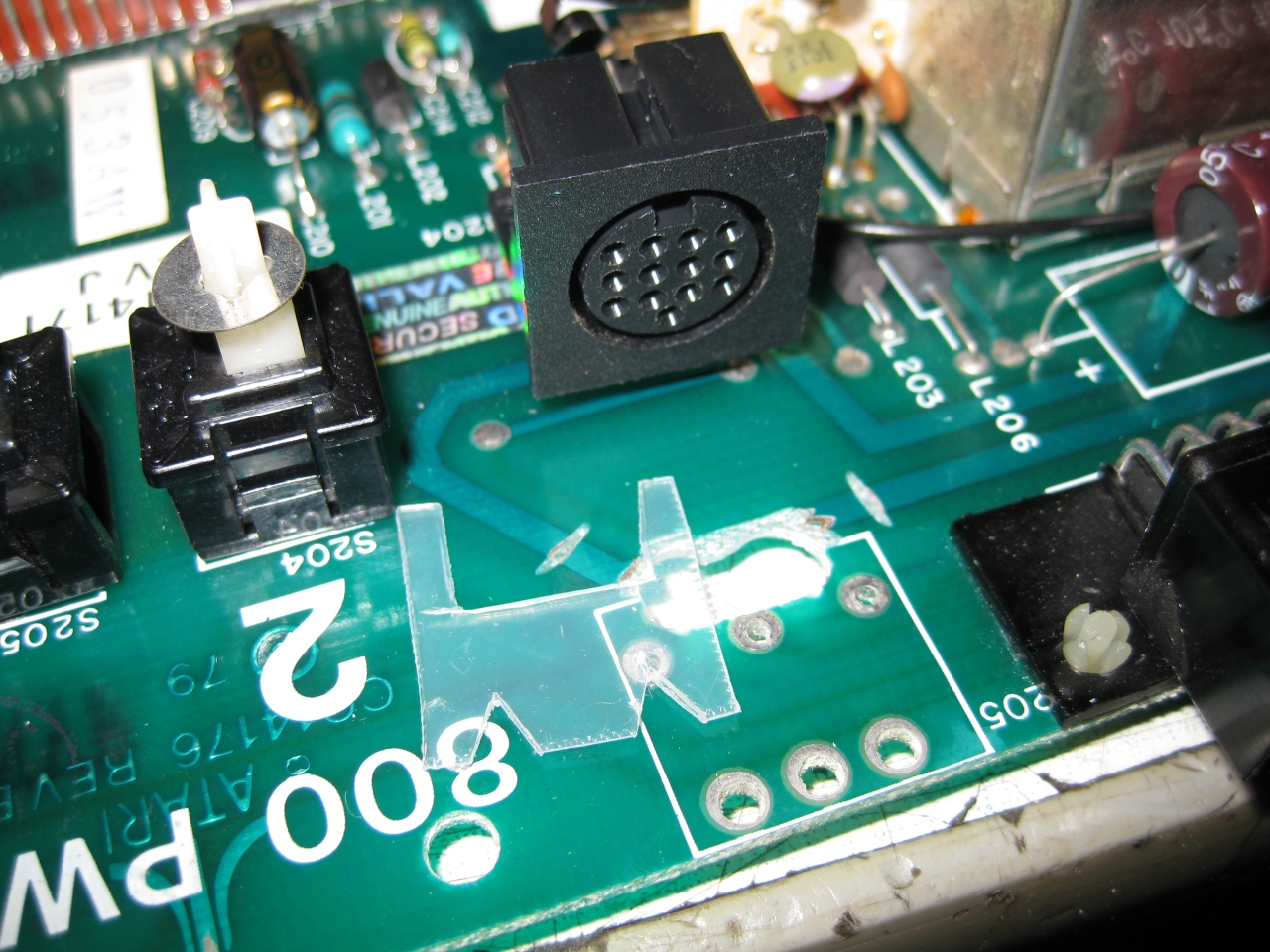 Atari 800 was my first computer after Sinclair ZX81 and its time to make the picture better. After checking the A/V Out it contains Video and S-Video in a good qualitiy. So i decided to replace the original DIN Connector and replace it with a DIN 13 like used in Atari 7800 french and Atari ST. I used some not needed pins from the Din 13 to put in Video and S-Video too. So its possible to use RGB-Output via a standard french Atari 7800 RGB Cable and with a special Cable made I can use Video and S-Video too via the same connector.
