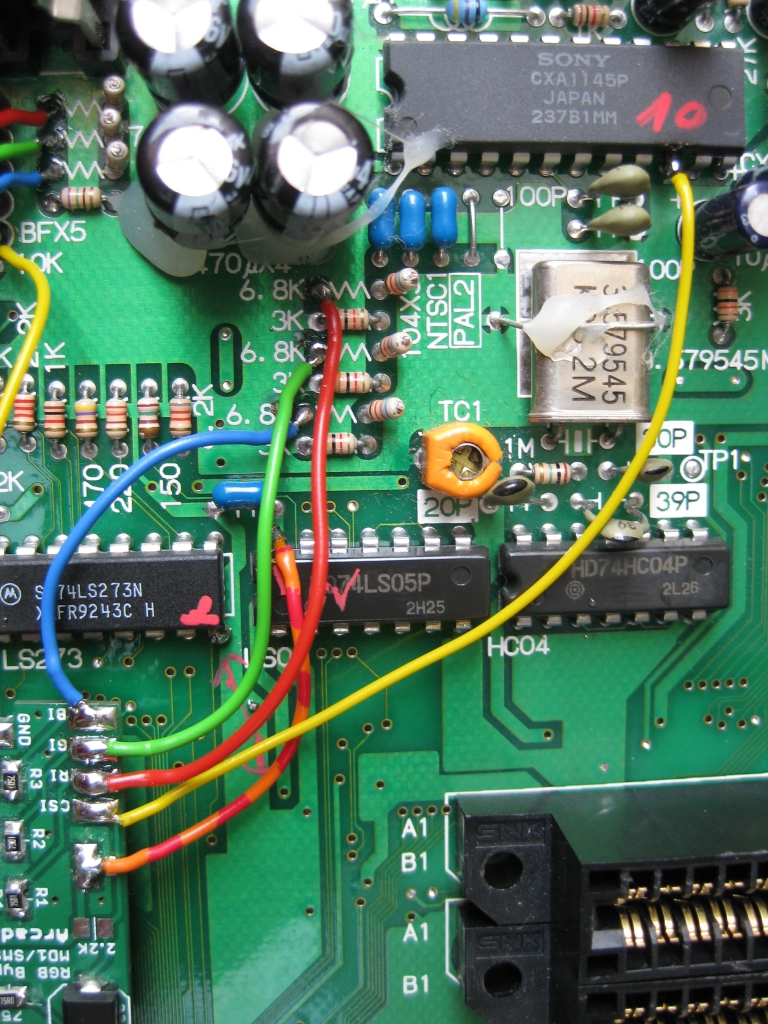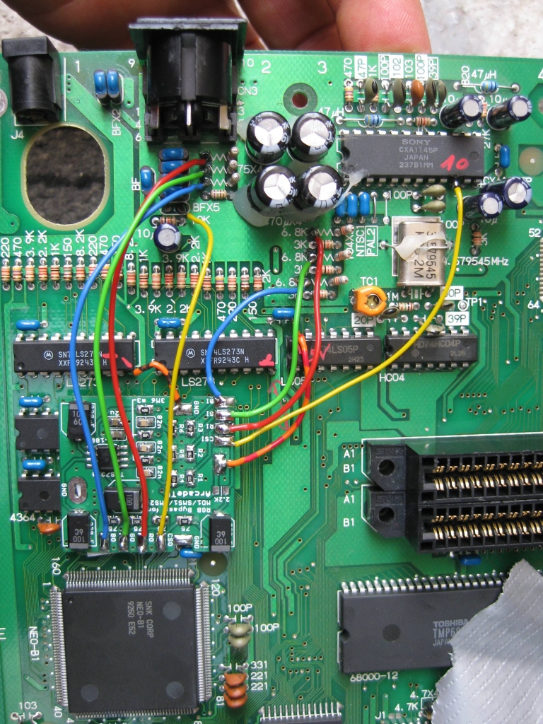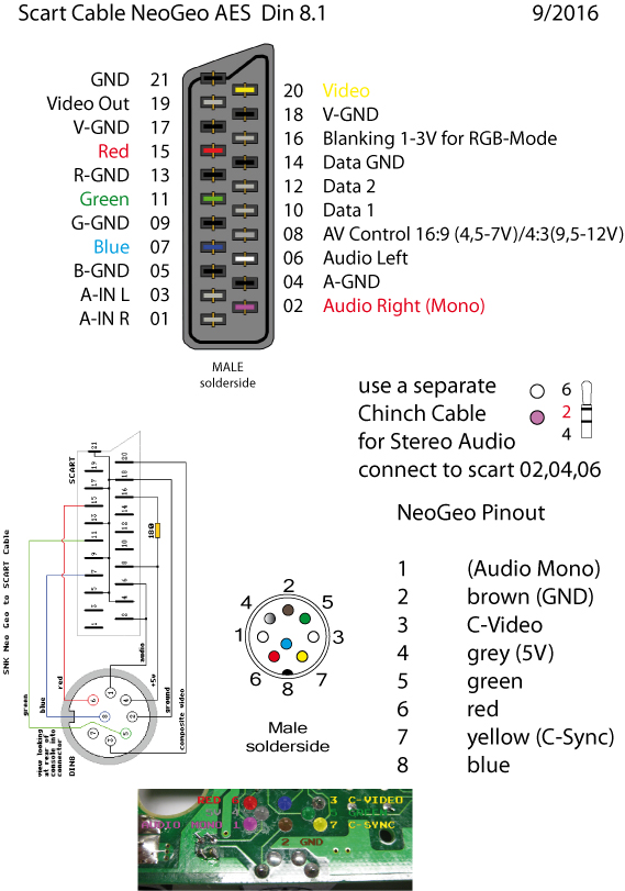 I put all needed connections to the rear side. Power, RGB-Out, Audio Out.