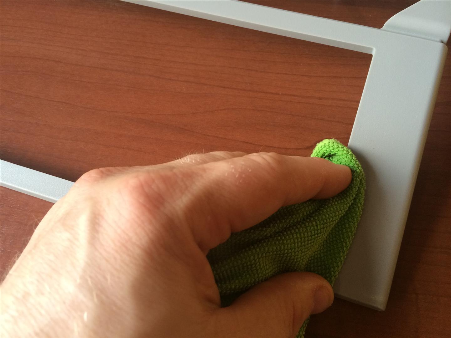After removing I cleaned the case with water. If you want to speedup the process you can use a hair dryer. For strong dirt you can use ethyl-alcohol. A tooth brush does a good job too.